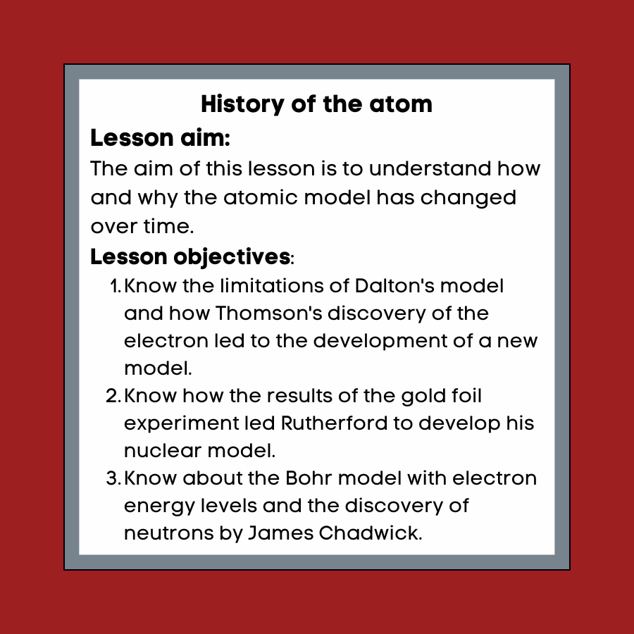 History of the atom Cover lesson