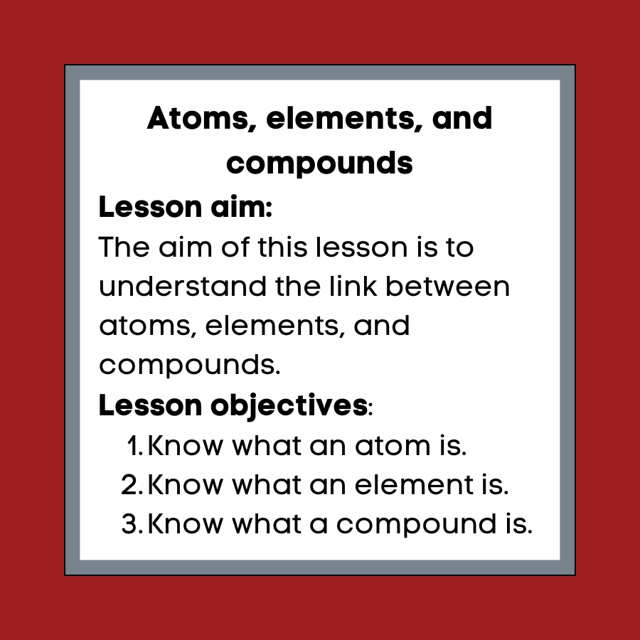 Atoms, elements, and compounds Cover lesson